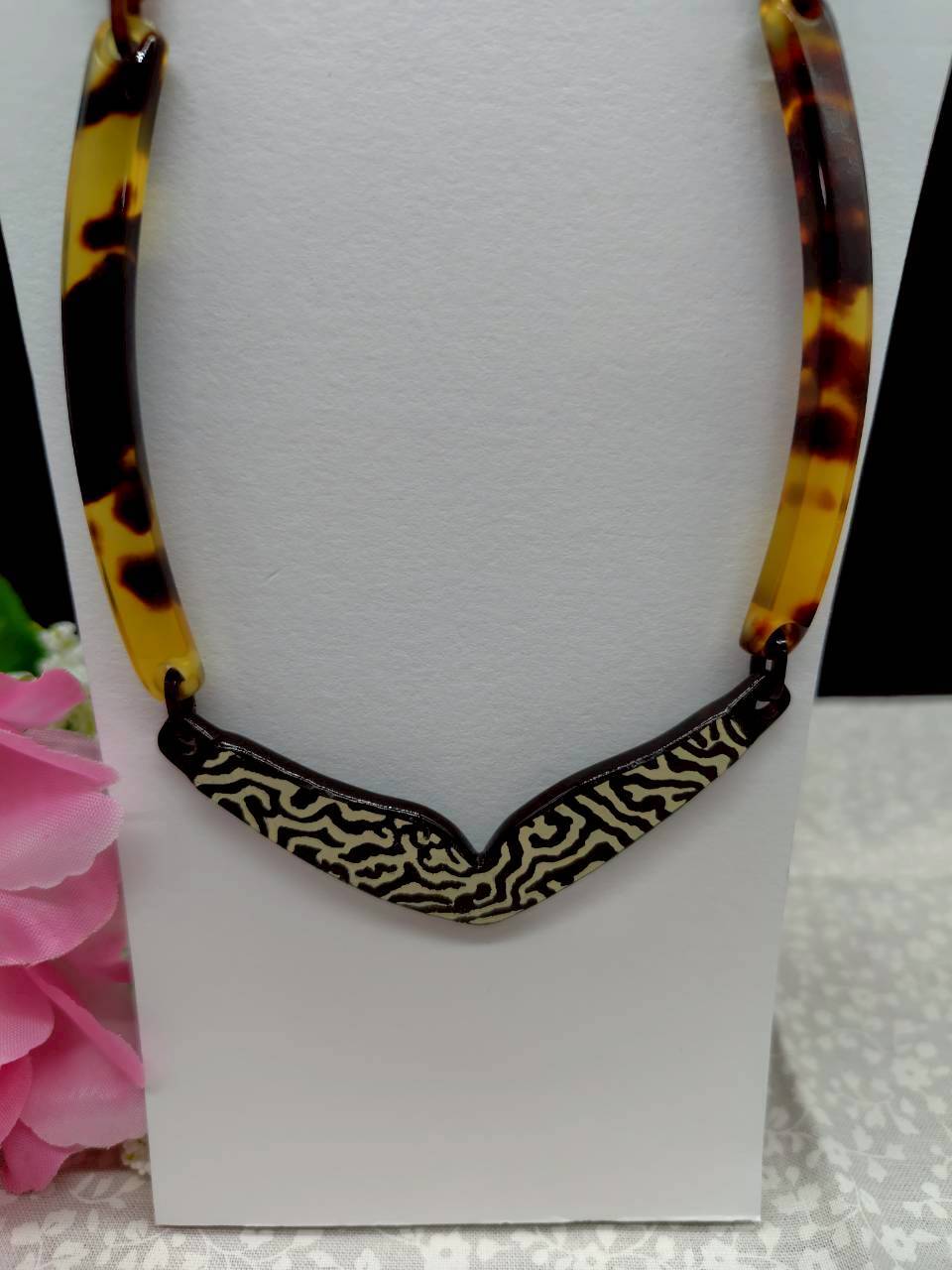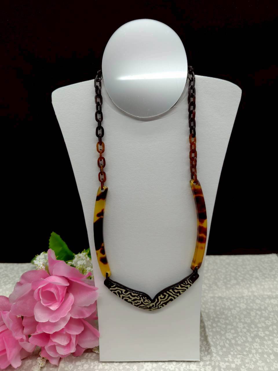 このネックレスはうるし蒔絵のV型のデザインが特徴です。V型のスタイリッシュな形状がもたらす印象は、シンプルでありながら独自の魅力を放っています。さらに、うるし蒔絵の繊細な技術が施され、贅沢な輝きを引き立てます。