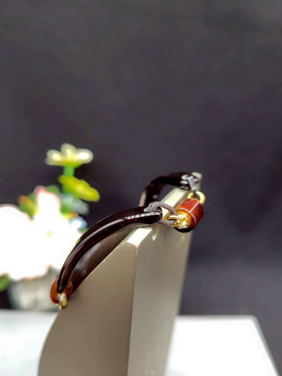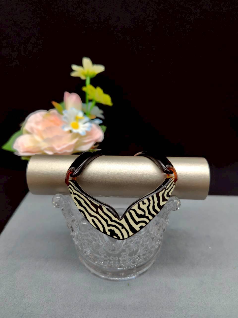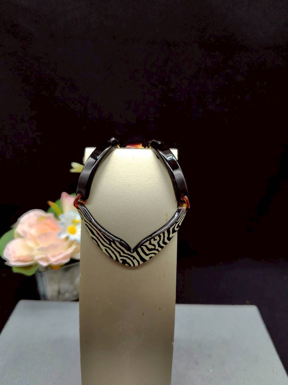 このブレスレットはうるし蒔絵のV型のデザインが特徴です。うるし蒔絵の精巧な技法によって生み出された美しい模様は、身に着ける人の魅力を一層高め、存在感を引き立てます。