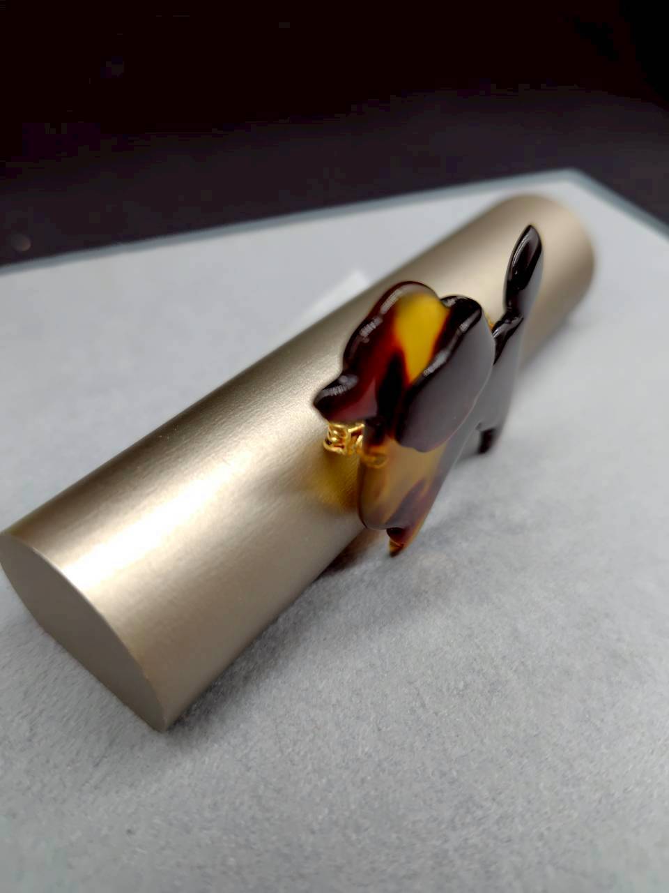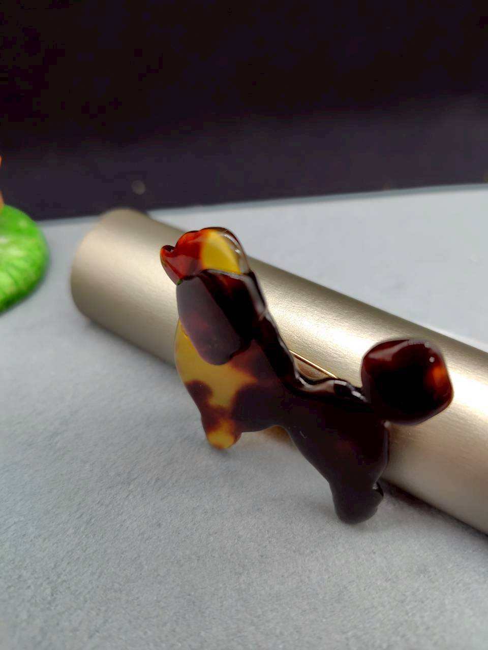 このブローチはかわいらしい子犬を表現しています。独自の光沢と温かみのある色合いが、まるであなたのそばで寄り添っているかのような愛らしさを感じさせます。自然の素材が醸し出す風合いは、身につけることで特別な雰囲気をもたらします。