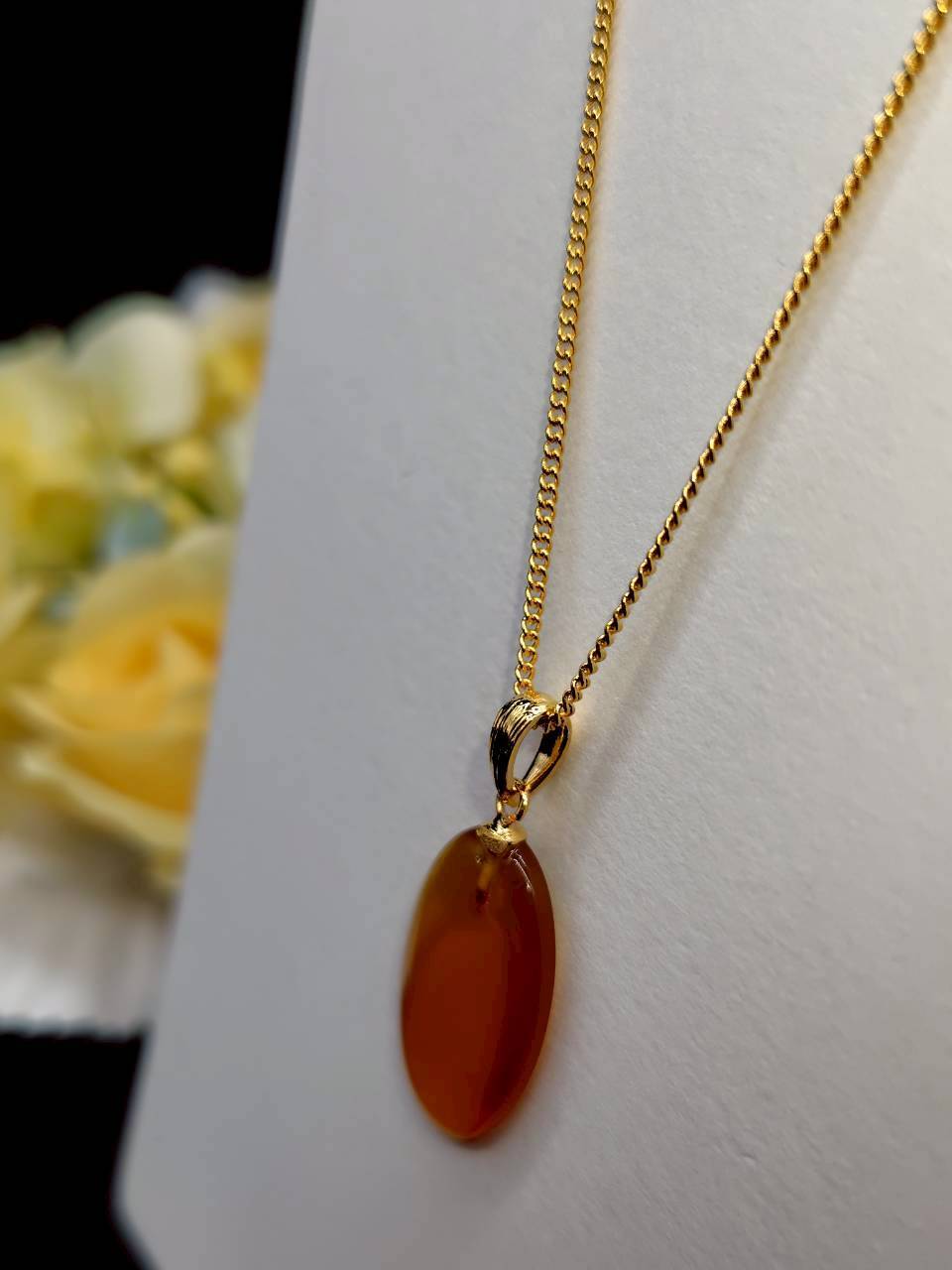 【P-22】本べっ甲 白甲 小判型ペンダント(金具チェーン付き)