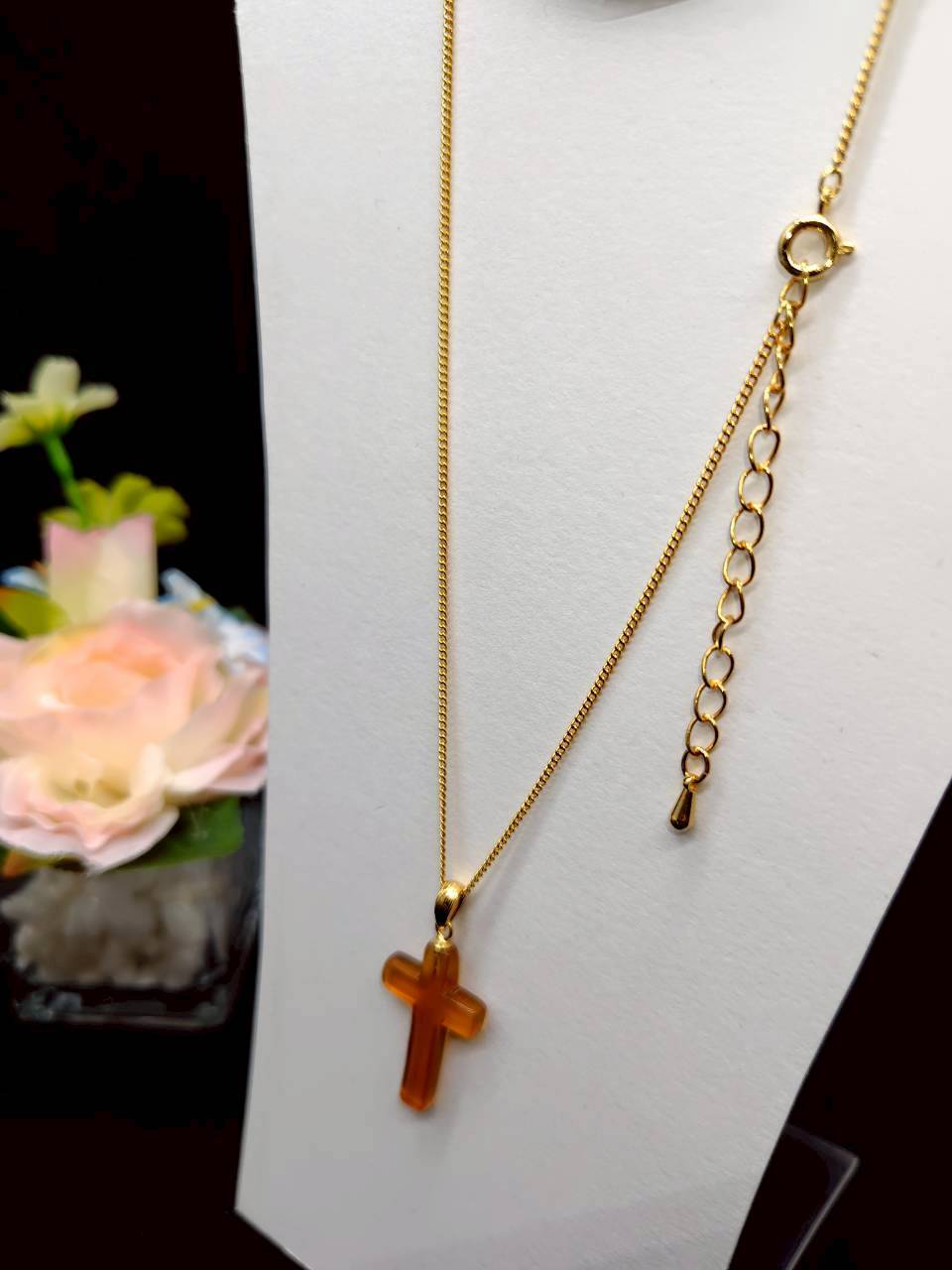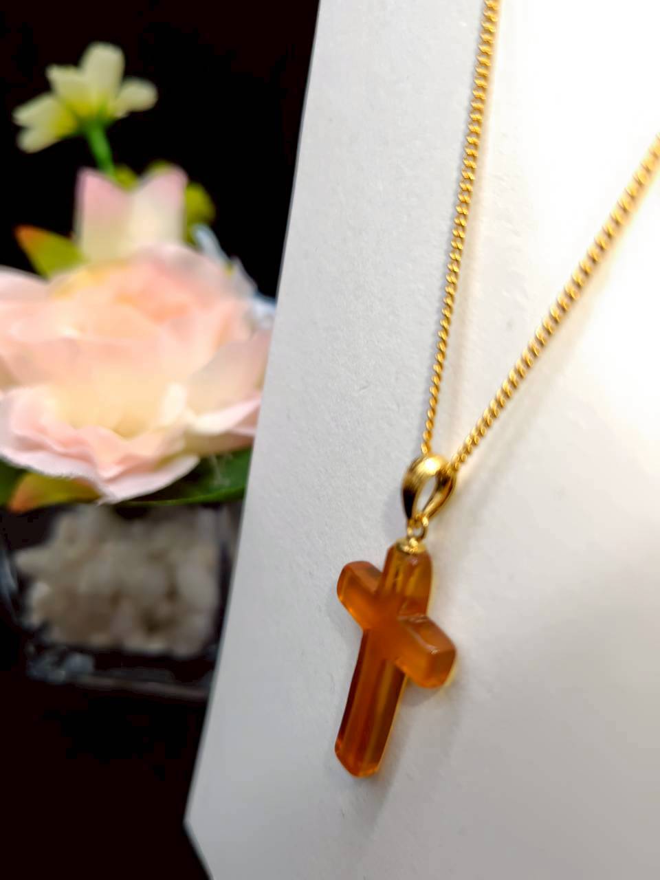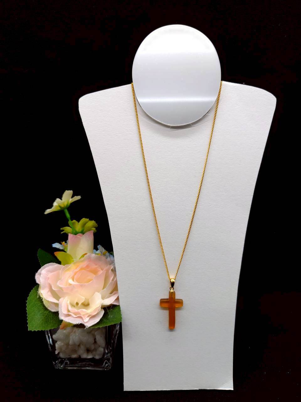 【P-21】本べっ甲 白甲 クロス型ペンダント(金具チェーン付き)