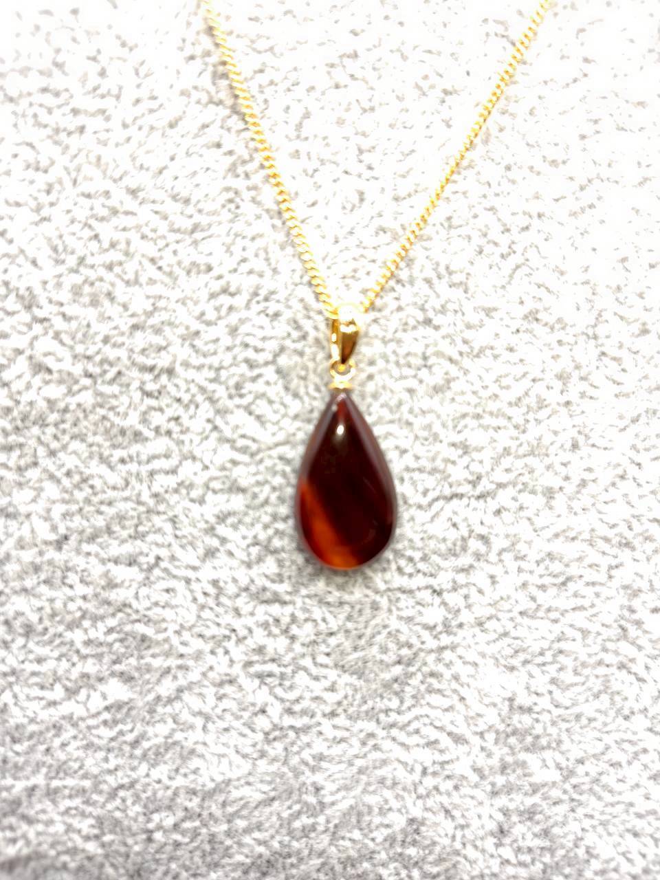 【P-17】本べっ甲 赤茨布 しずく型ペンダント(金具チェーン付き)