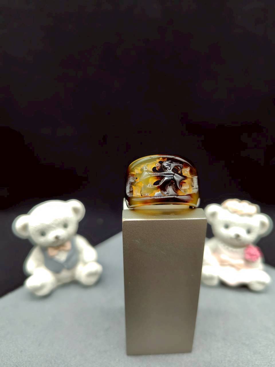 【R-3】本べっ甲 茨布 唐草彫りリング(17号)
