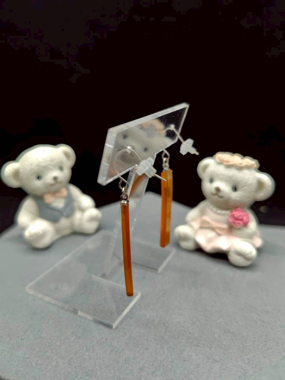 白甲を使用した角柱デザインのピアスは、エレガントな印象を与えつつも、ユニークな個性を引き立てる一品です。クリアな白色がどんなスタイルにも合わせやすく、特別なイベントだけでなく普段のコーディネートにもぴったりです。