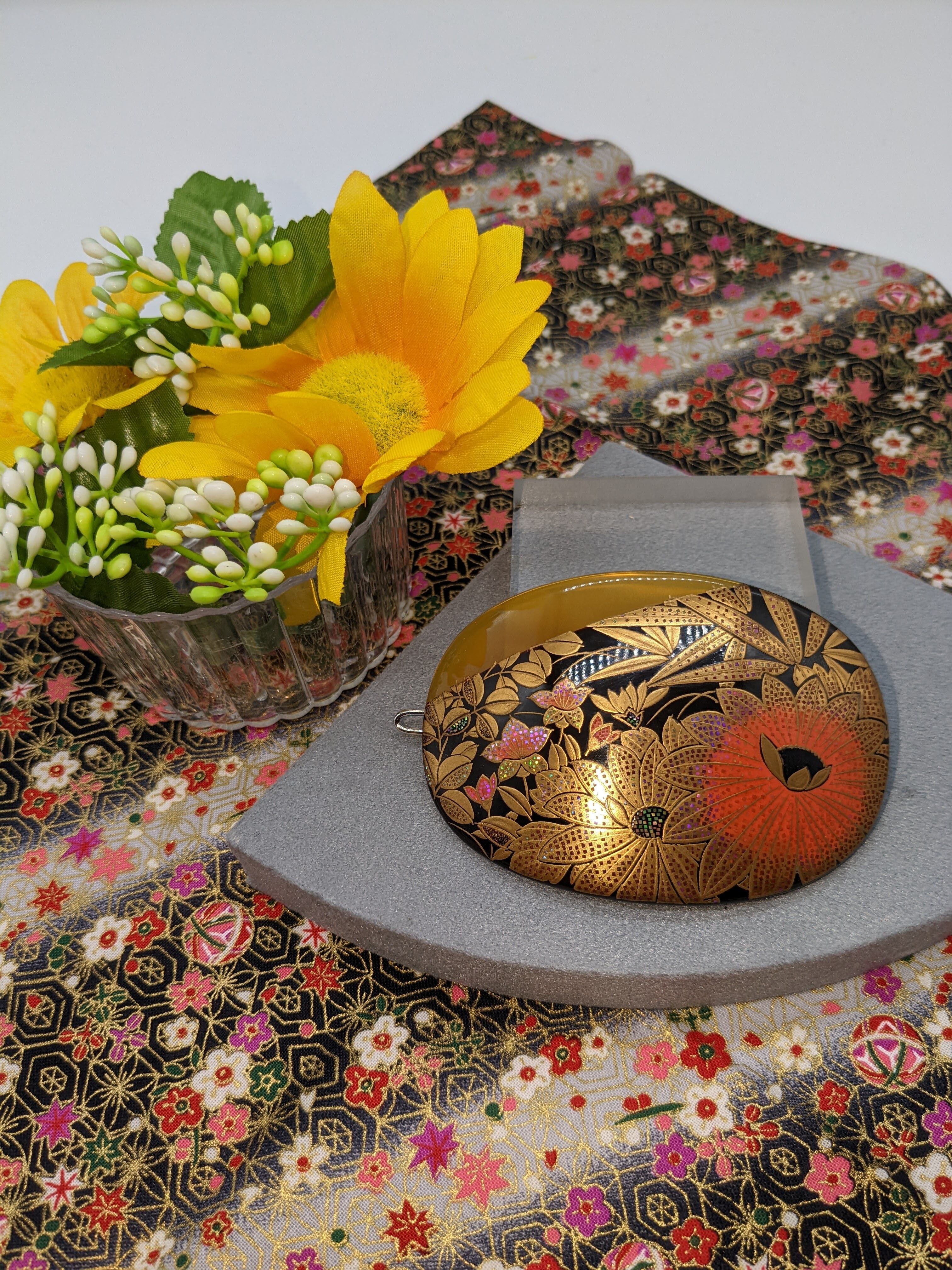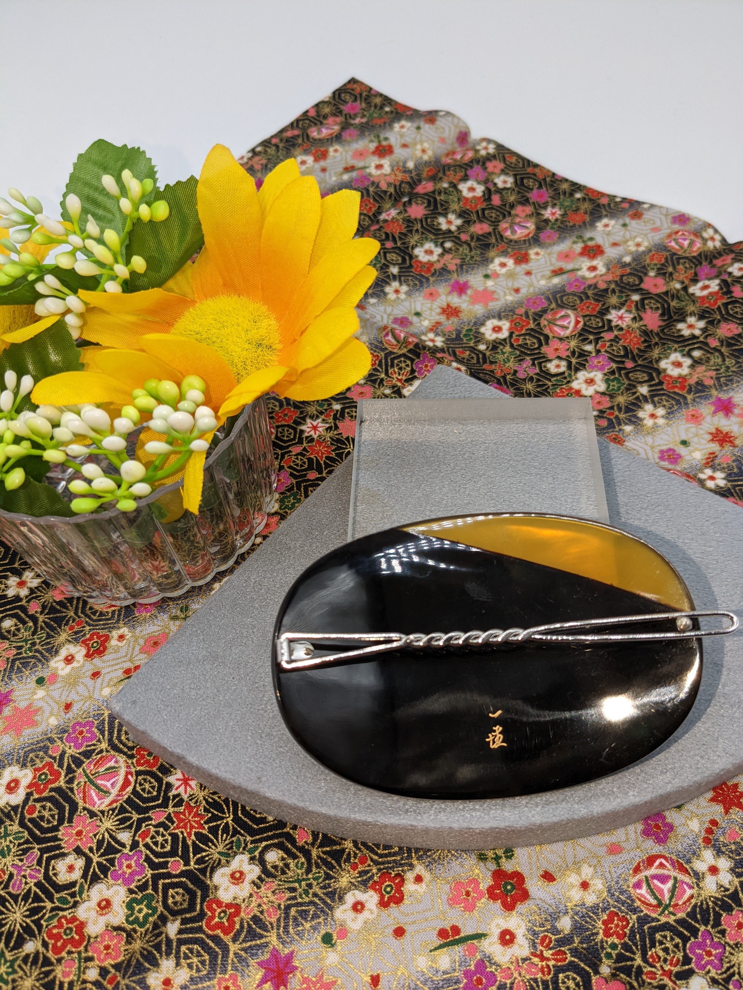 【K-2】本べっ甲 白黒蒔絵 髪留め