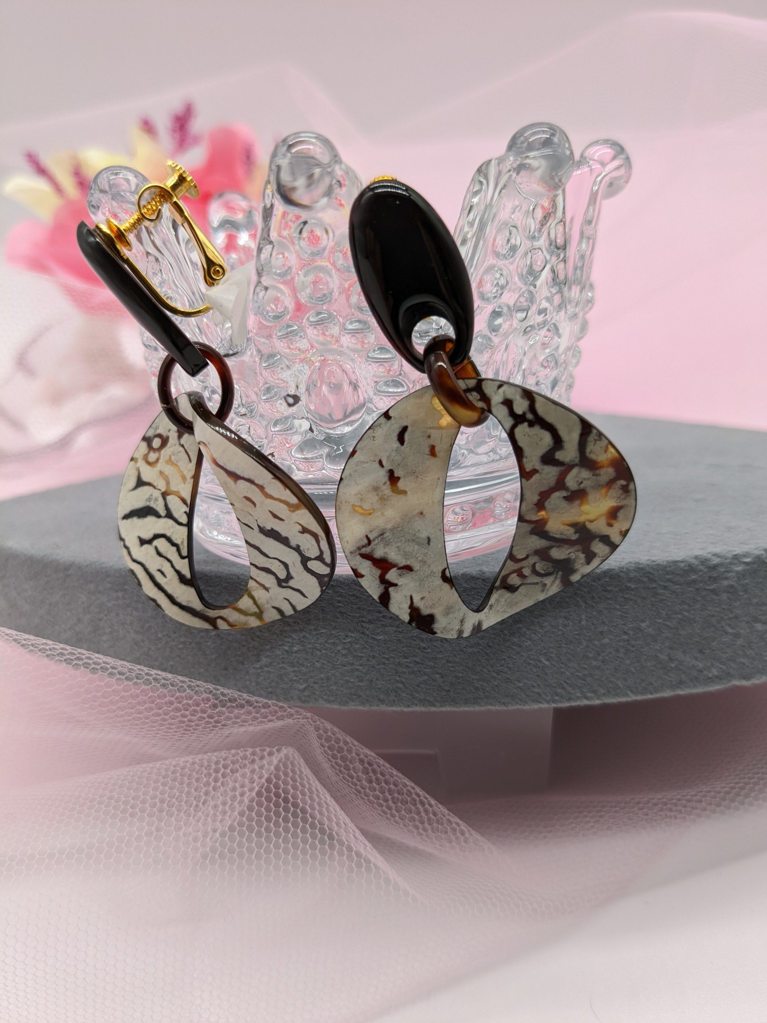 自然の風合いを活かし、ひとつひとつ丁寧に作り上げられた本べっ甲のイヤリングは、